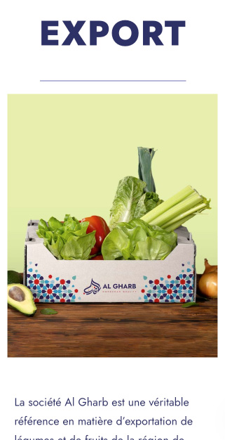 La société AL GHARB, est un grossiste producteur de fruits et légumes frais et surgelée, basée dans la région du Gharb au Maroc. Leur savoir-faire et leur professionnalisme garantissent des produits de qualité pour les clients.