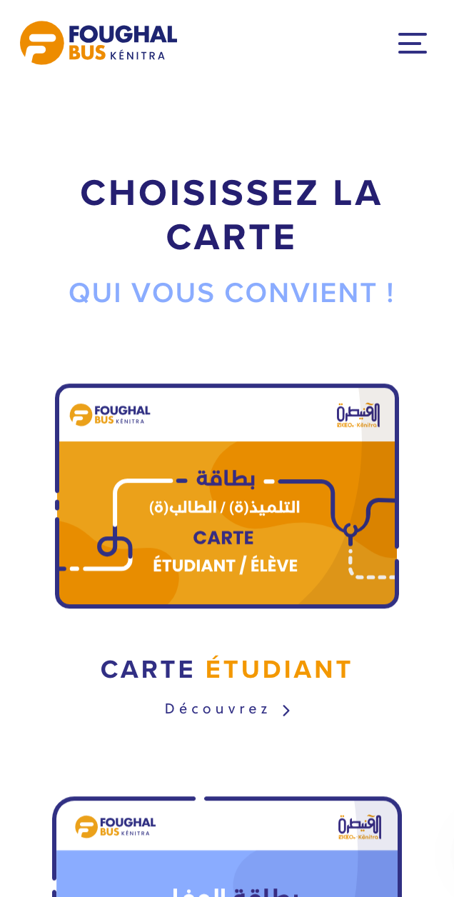 Le site web de Foughal Bus Kénitra a été conçu pour offrir une expérience utilisateur fluide, intuitive et accessible : Un design moderne & ergonomique - Interface épurée avec une hiérarchie visuelle claire. - Navigation simplifiée pour un accès rapide aux informations essentielles. - Adaptabilité totale (responsive design) pour une expérience optimale sur mobile, tablette et ordinateur.