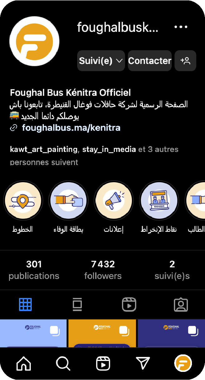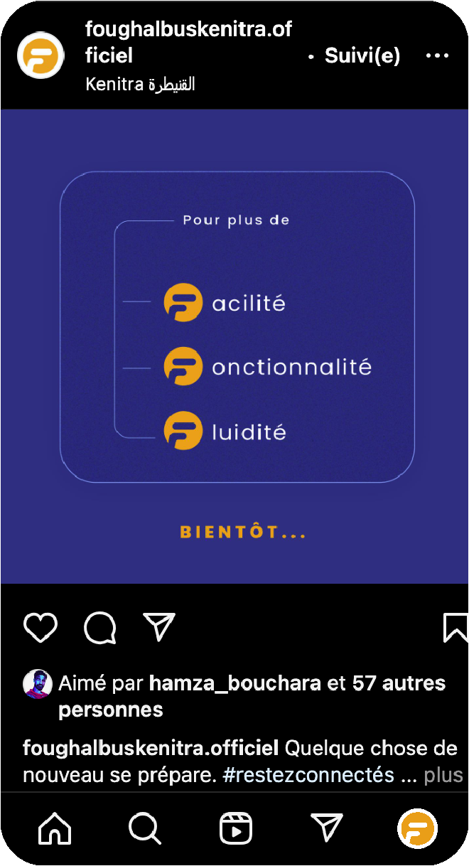Foughal Bus Kénitra incarne le dynamisme et la modernité dans le domaine du transport urbain. Son visuel repose sur des éléments graphiques forts qui illustrent l'innovation, la fluidité et la fiabilité de ses services.