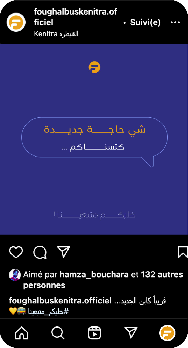 Les postes auront pour but d’informer les utilisateurs des bus de toute information concernant les services des bus, les sensibiliser de leurs obligations pour un voyage en commun serein. la page peut informer des bon plans de la ville de Kénitra pour les habitants et la faire découvrir pour les étrangers. Par ailleurs ces postes auront pour objectif de créer une communauté jeune qui interagira, et communiquera ses besoins et ses attentes.