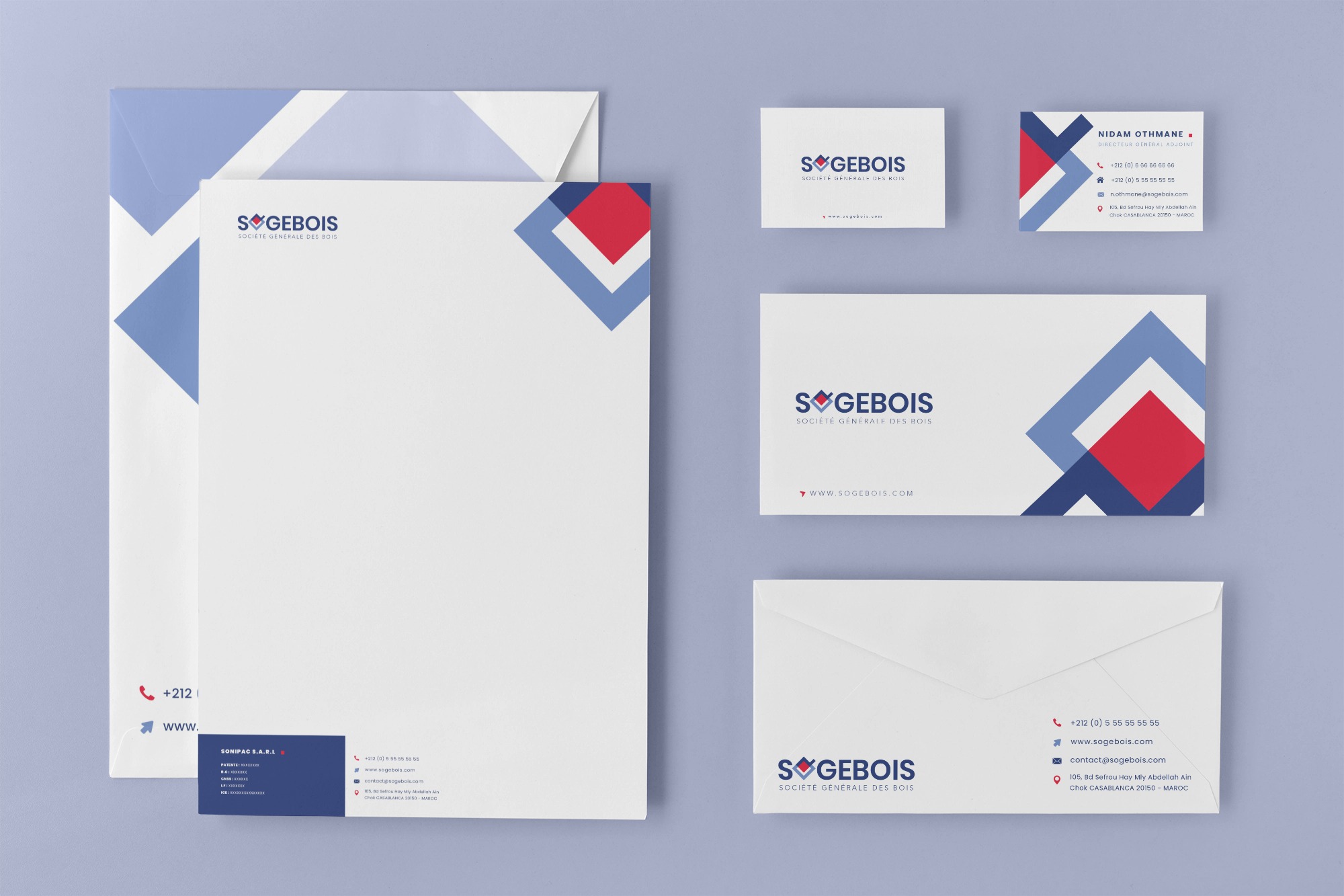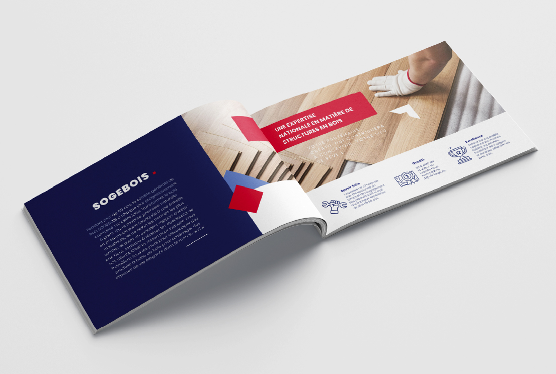 - L'identité visuelle de SOGÉ BOIS a été conçue pour refléter son expertise, son professionnalisme et son héritage familial dans le domaine du bois. - La palette de couleurs repose sur des nuances de bleu, évoquant la fiabilité et la qualité, associées à des touches de rouge pour traduire la passion et l'énergie. - La typographie est moderne et épurée, apportant une touche d'élégance et de sophistication à l'image de marque.