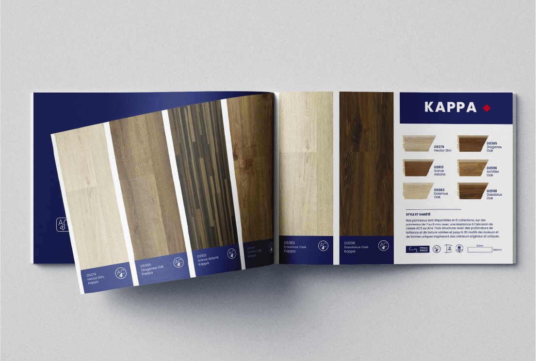 Catalogue : Un catalogue détaillé des produits, intégrant une présentation claire des gammes de parquets et de cuisines, avec des visuels de qualité et des descriptions bien structurées. Objets promotionnels : Des sacs, porte-clés et stylos personnalisés ont été conçus pour renforcer la visibilité de la marque et offrir un support tangible de communication aux clients et partenaires.